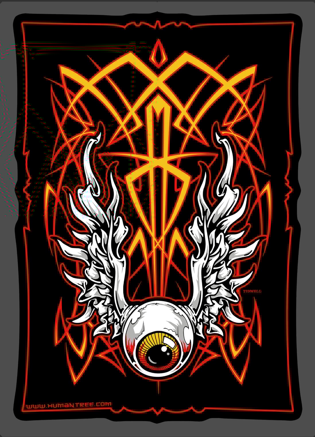 You’ll get 2 of the FLYING EYEBALL PINSTRIPE STICKERS, all weather vinyl stickers for $6 , plus I will throw in an extra random sticker or 2. Aprox. 5 inches tall.